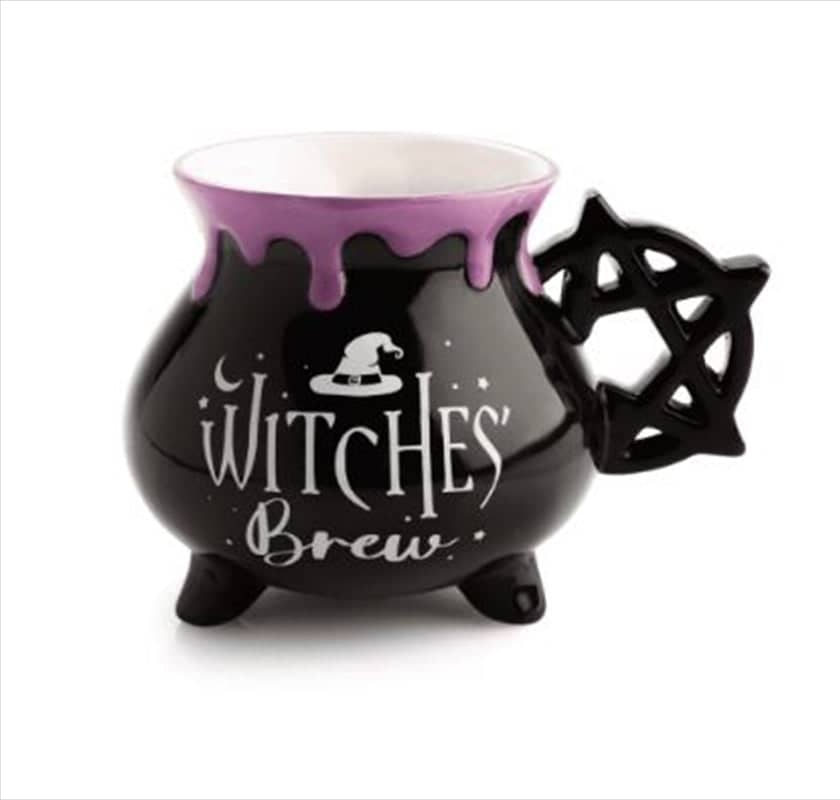 Striking pentacle handle and purple drips on the rim - like you're brewing a peculiar potion!
