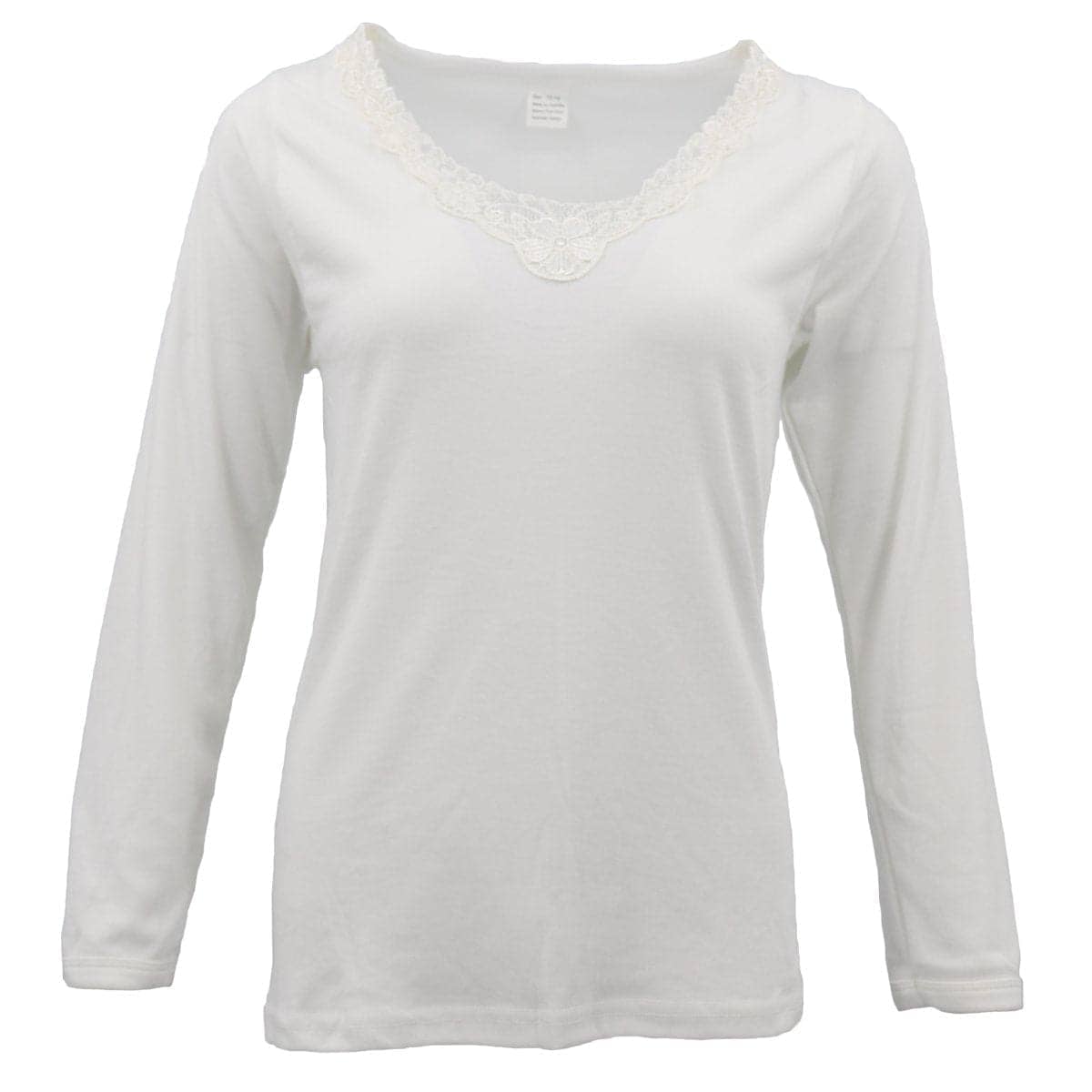 Womens Merino Wool Top Pants Thermal Leggings Long Johns Underwear Pajamas, Women's Floral Top - Beige B, 20-22