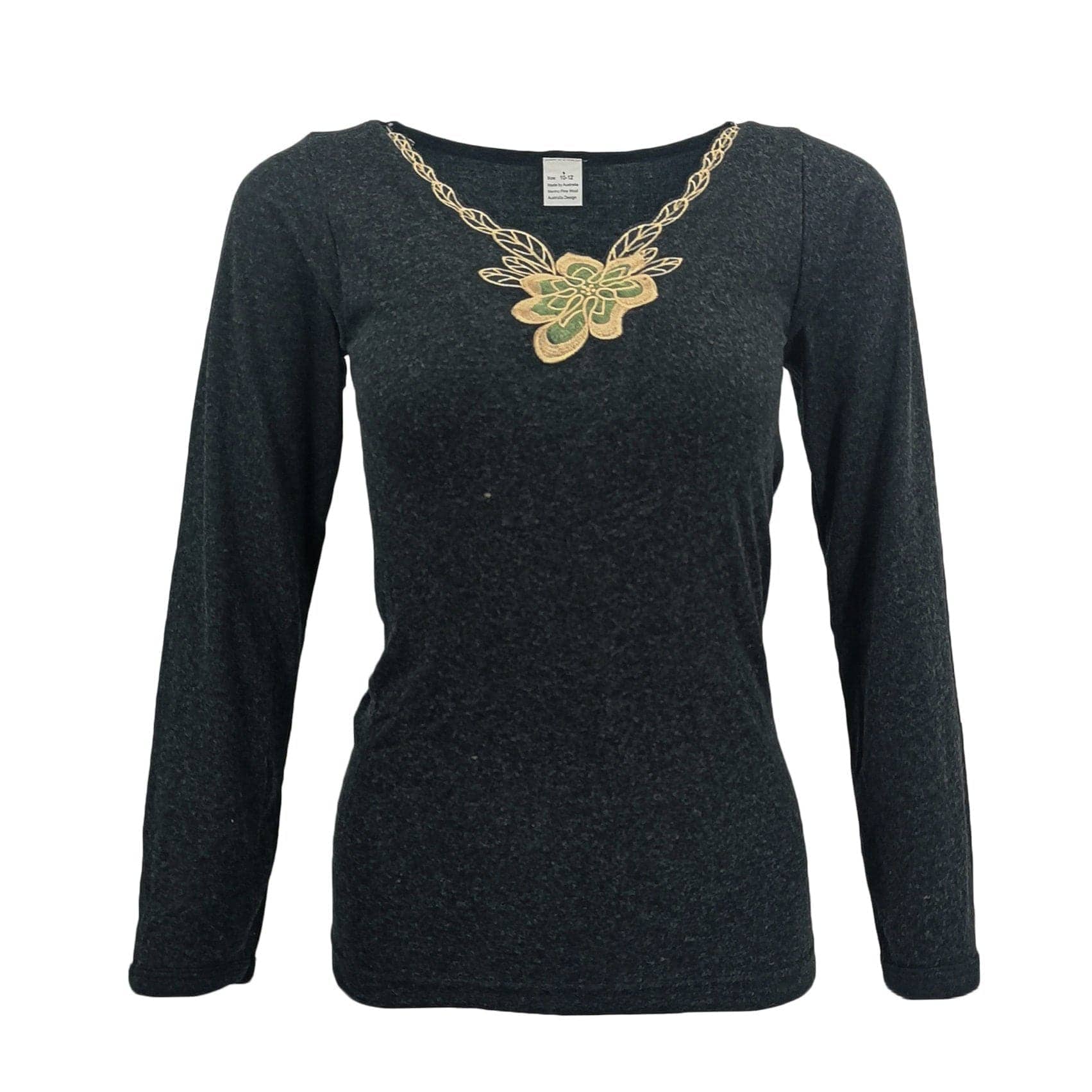 Womens Merino Wool Top Pants Thermal Leggings Long Johns Underwear Pajamas, Women's Floral Top - Black, 14-16