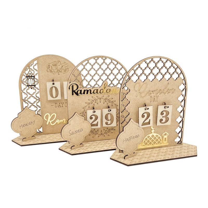 Wooden Eid Ramadan Countdown Calendar Ornament DIY Wood Crafts Party Decor #T